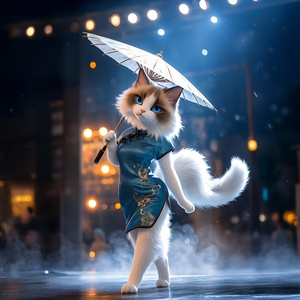 I have always harbored a deep fondness for cats, their agile bodies and serene demeanor filling my heart with admiration. Their elegant movements and playful antics never fail to captivate my attention. One day, while browsing through various images, I stumbled upon a mesmerizing picture of a cat adorned in a traditional blue dress, holding a delicate parasol with grace. The regal feline in the image instantly stole my heart, and I knew I had to do something special with it.
